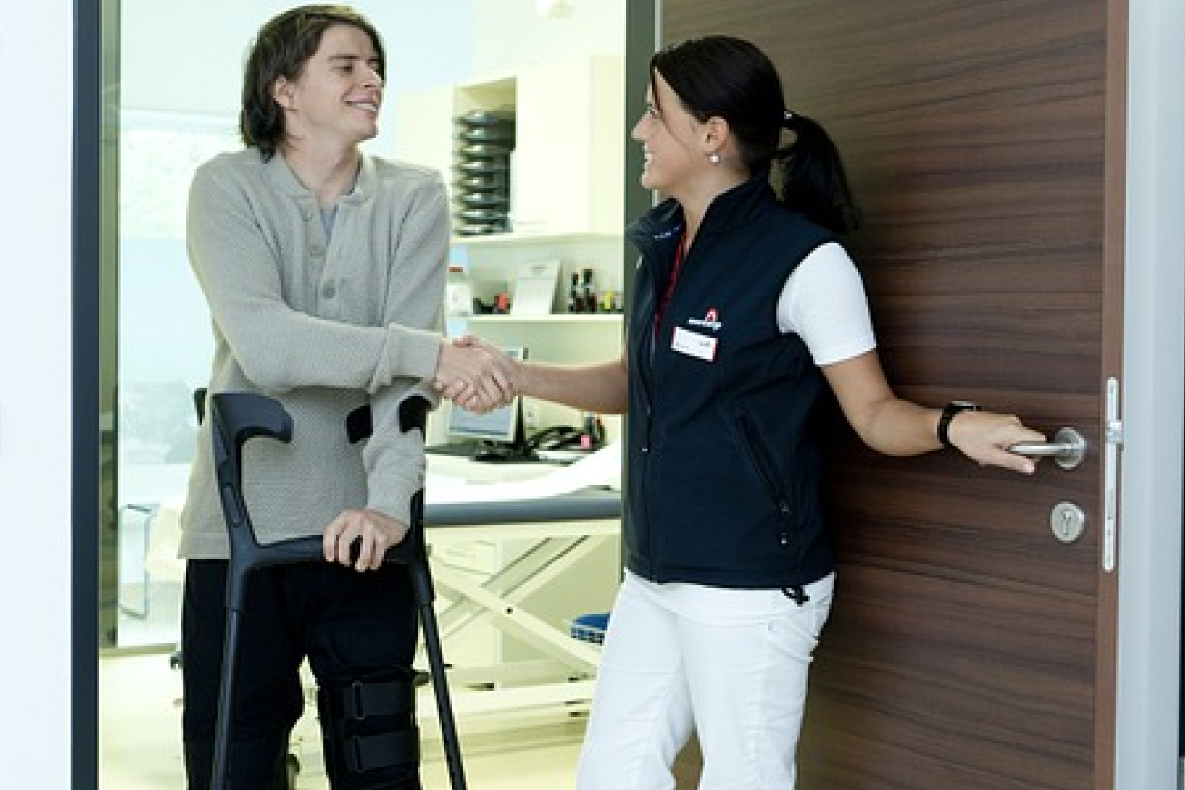 A healthcare professional has the patient walk with crutches across the force plate keeping to the WB restriction learned earlier in a static position. Cues are given to help the patient achieve the prescribed WB status in walking. The gait data provides information about the patient’s WB compliance level. The force plate training applies WB to a functional activity of daily living.
